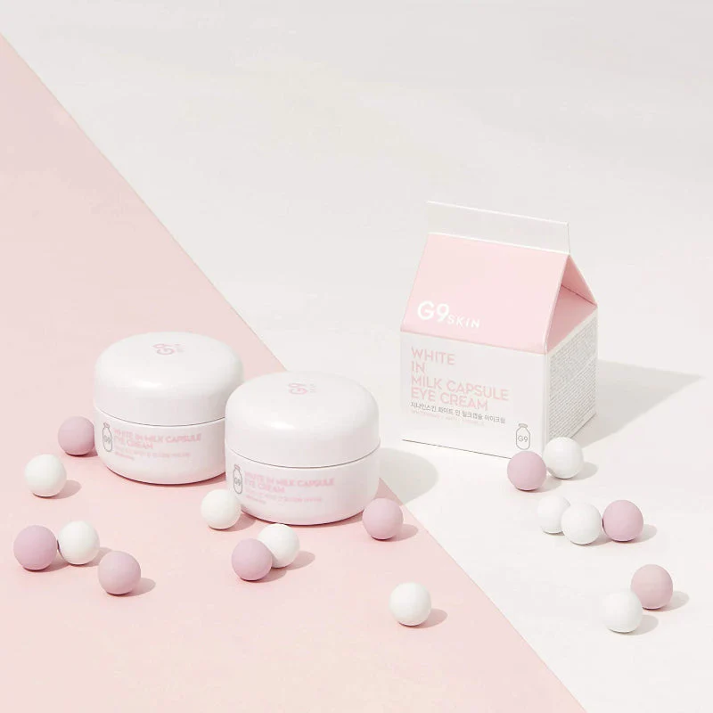 Die G9SKIN White In Milk Capsule Eye Cream ist eine Augencreme mit Doppelfunktion. Sie spendet Feuchtigkeit und pflegt deine Haut, während sie mit ihren Mikrokapseln, die voller Wirkstoffe sind, die die Haut aufhellen, Augenringe reduziert. Außerdem verbessert sie effektiv die Elastizität der Haut und reduziert das Erscheinungsbild der kleinen Fältchen um die Augen.